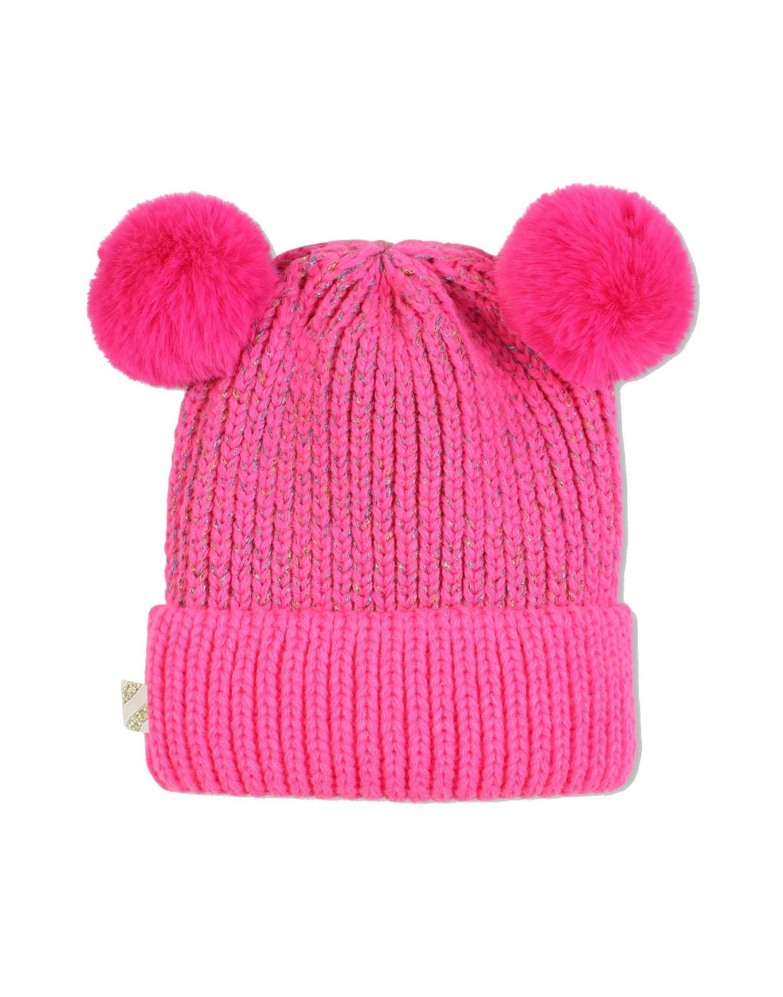 Πλεκτό σκουφάκι με δύο εντυπωσιακά pom pom από faux γούνα.