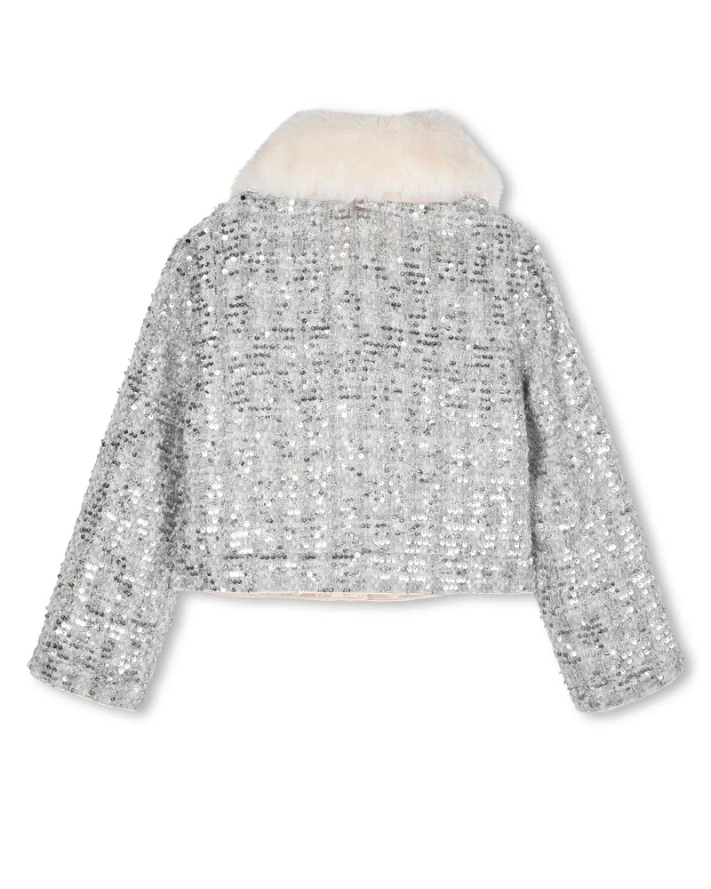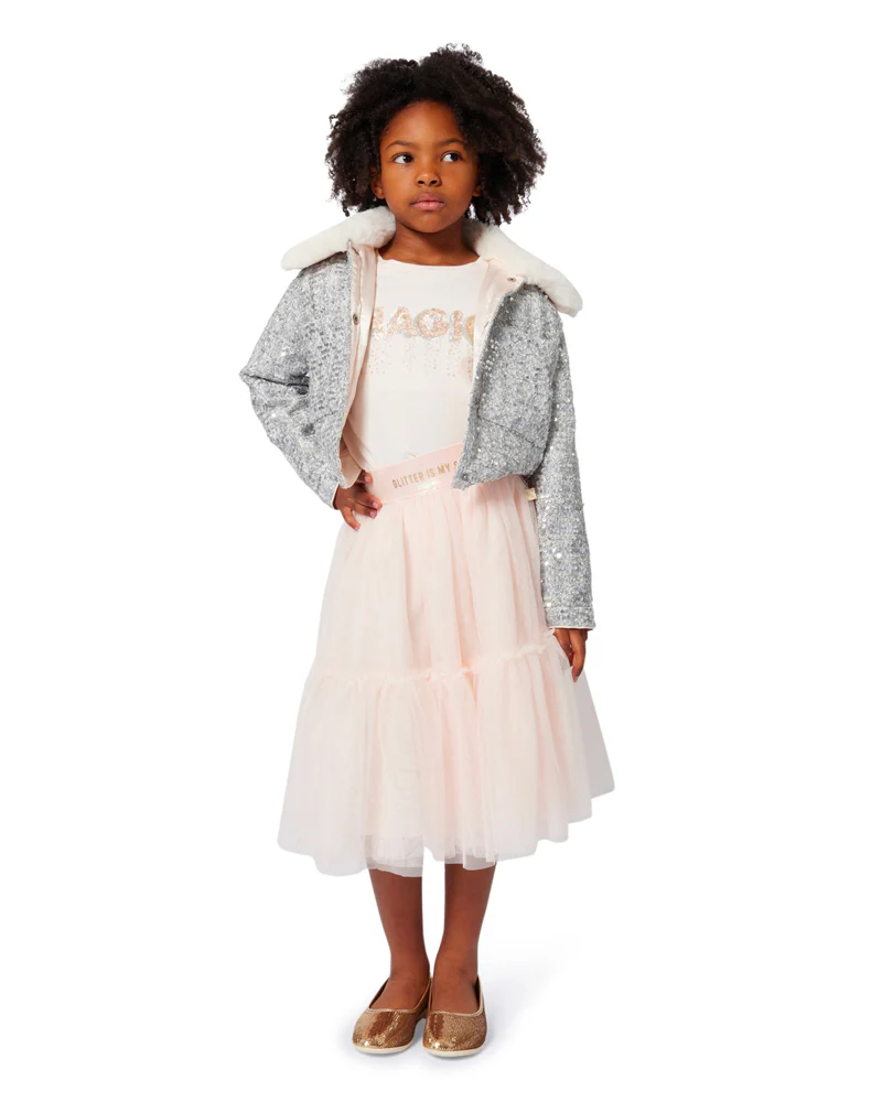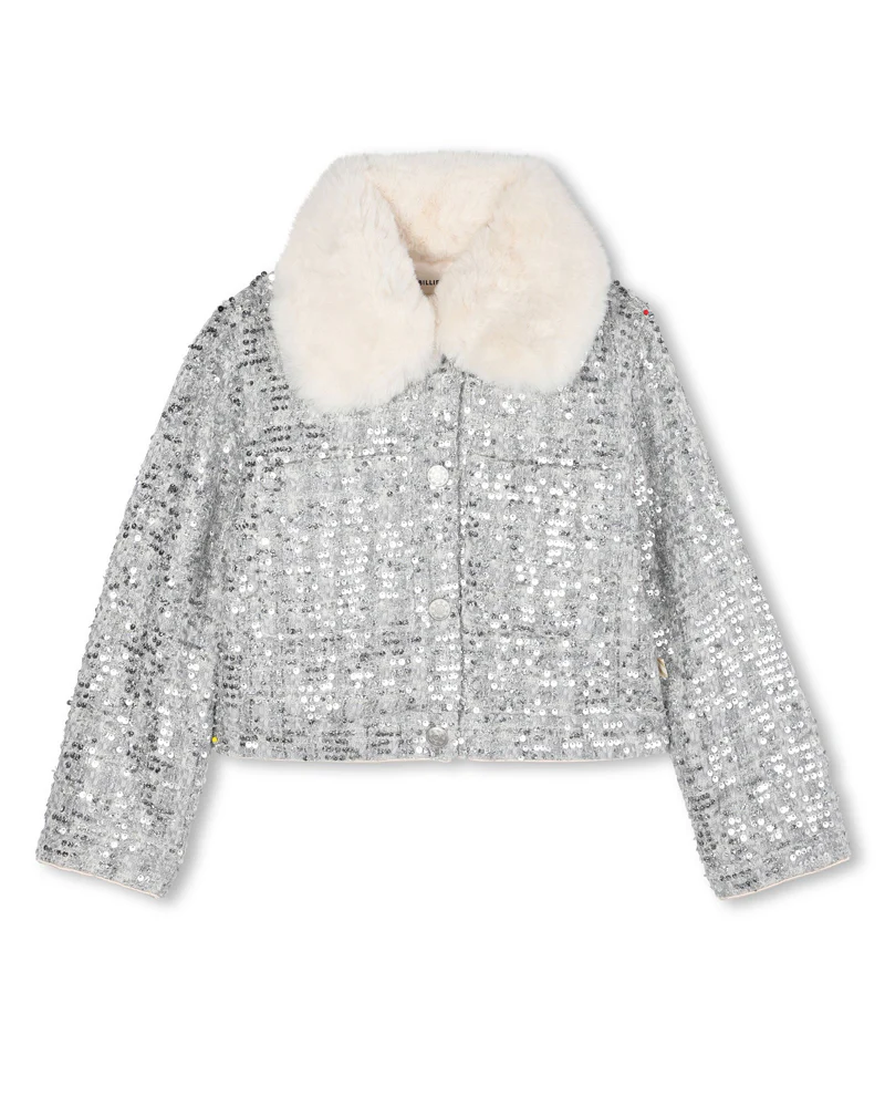 Αναβαθμίστε την γκαρνταρόμπα του παιδιού σας με αυτό το αριστοτεχνικά κατασκευασμένο ασημί τουίντ μπουφάν για κορίτσια από την Billieblush. Με ένα ζεστό φινίρισμα από τεχνητή γούνα, αυτό το μπουφάν συνδυάζει τη ζεστασιά με το εκλεπτυσμένο στυλ. Τα λεπτά διακοσμητικά προσθέτουν μια πινελιά κομψότητας, καθιστώντας το ιδανικό τόσο για casual εξόδους όσο και για ειδικές περιστάσεις. Σχεδιασμένο για άνεση και ανθεκτικότητα, είναι ένα ξεχωριστό κομμάτι που εξασφαλίζει στο παιδί σας στυλ και άνεση σε πιο δροσερό καιρό.