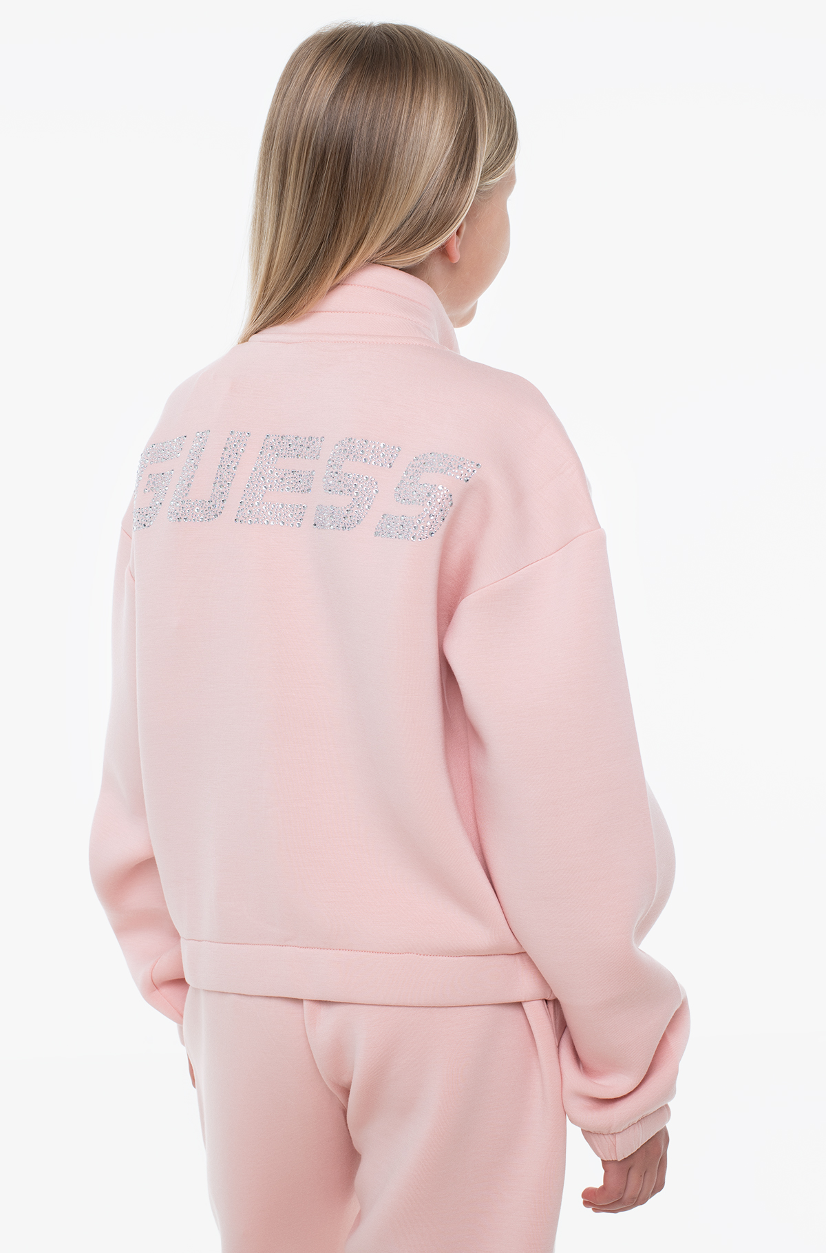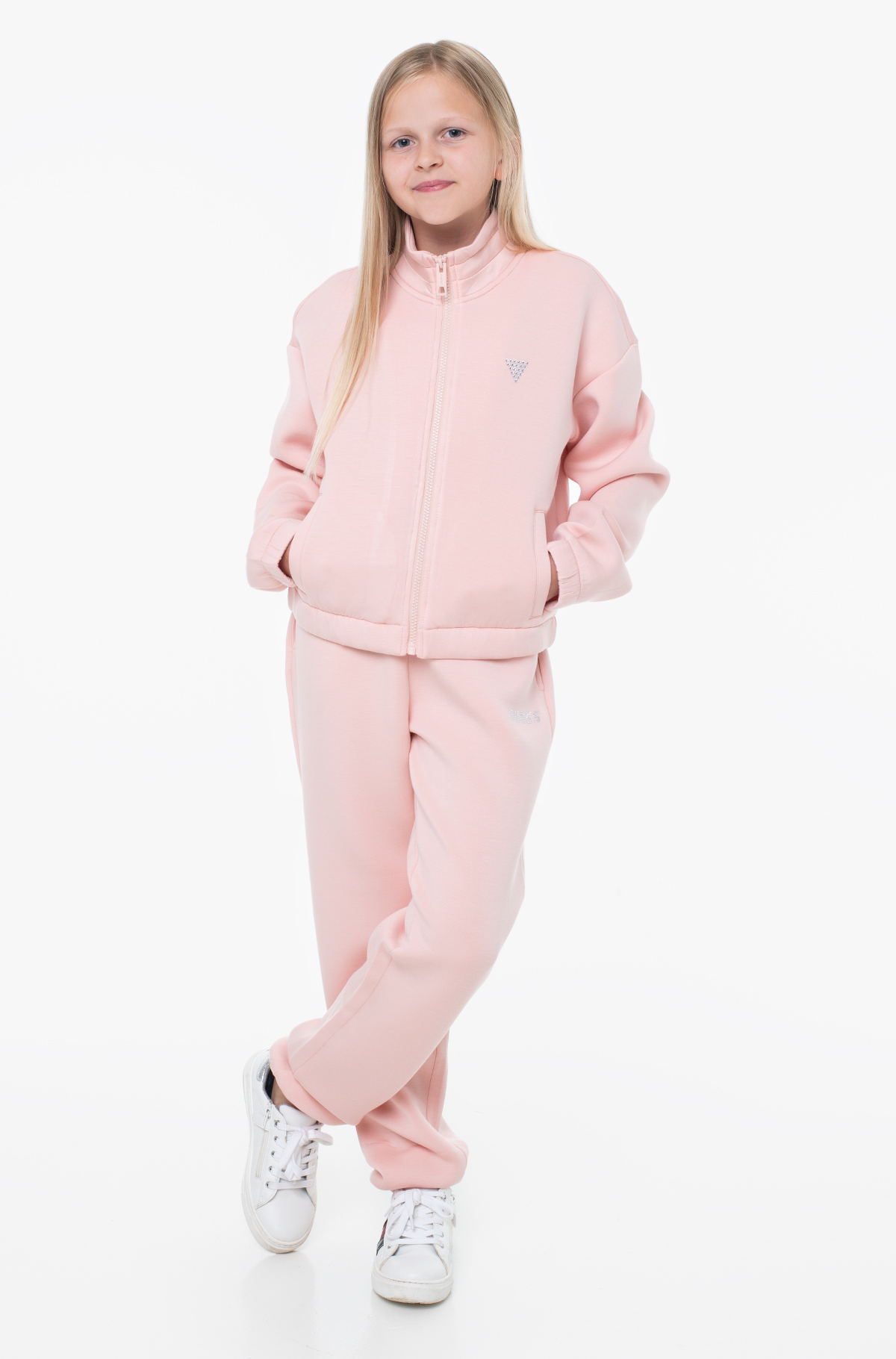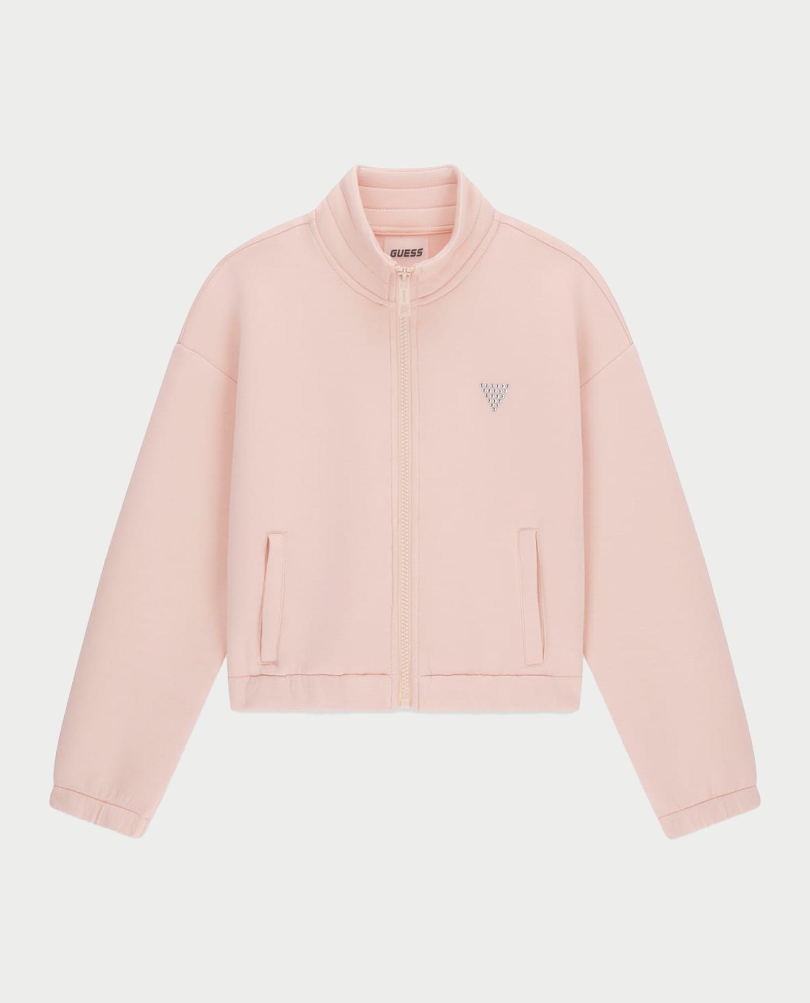 Φούτερ Guess active για κορίτσια με κλείσιμο με φερμουάρ σε όλο το μήκος, τριγωνικό λογότυπο στο στήθος και πλαϊνές τσέπες.