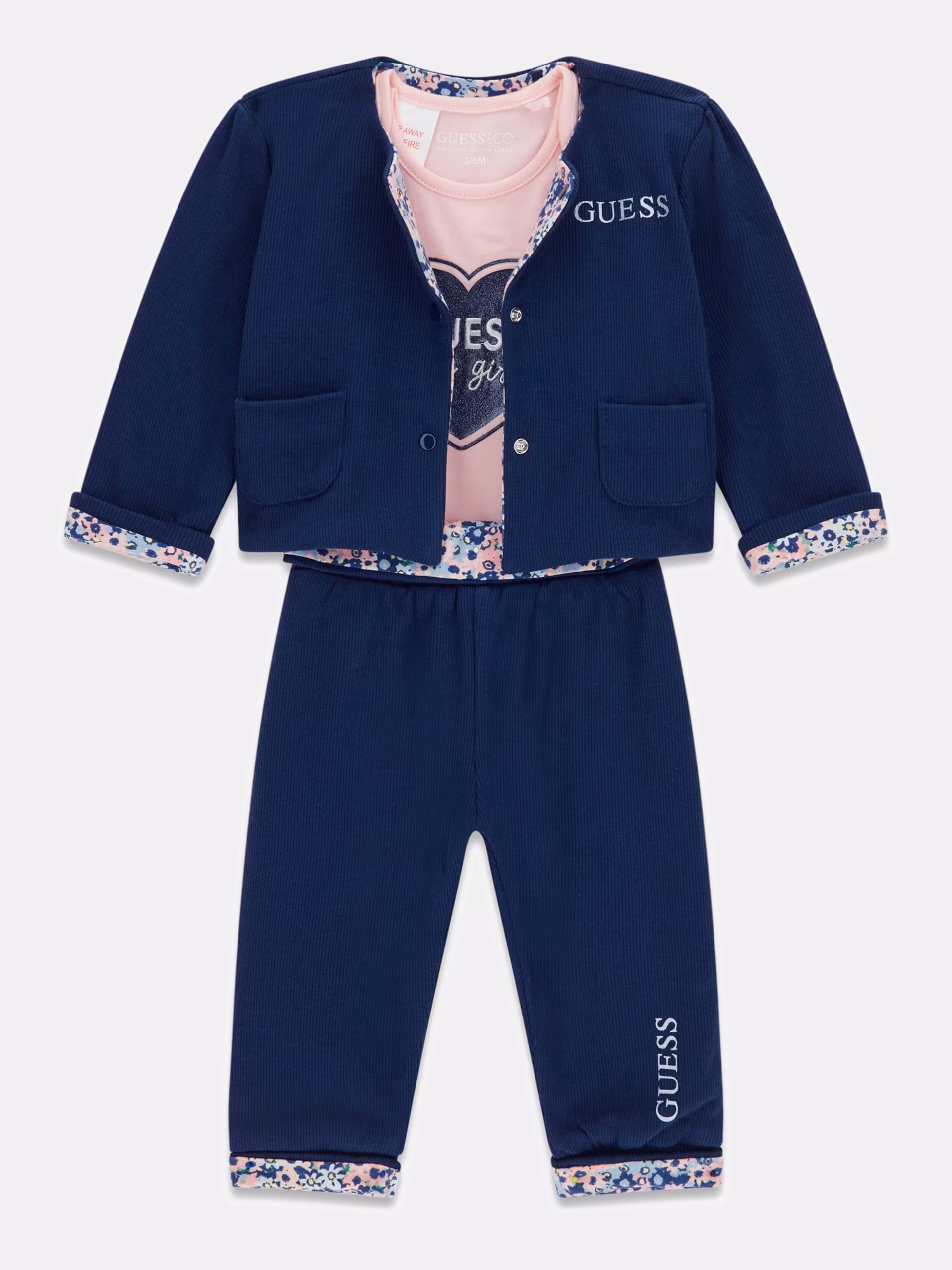 GUESS BABY SET ΜΠΟΥΦΑΝ, ΚΟΡΜΑΚΙ ΚΑΙ ΠΑΝΤΕΛΟΝΙ