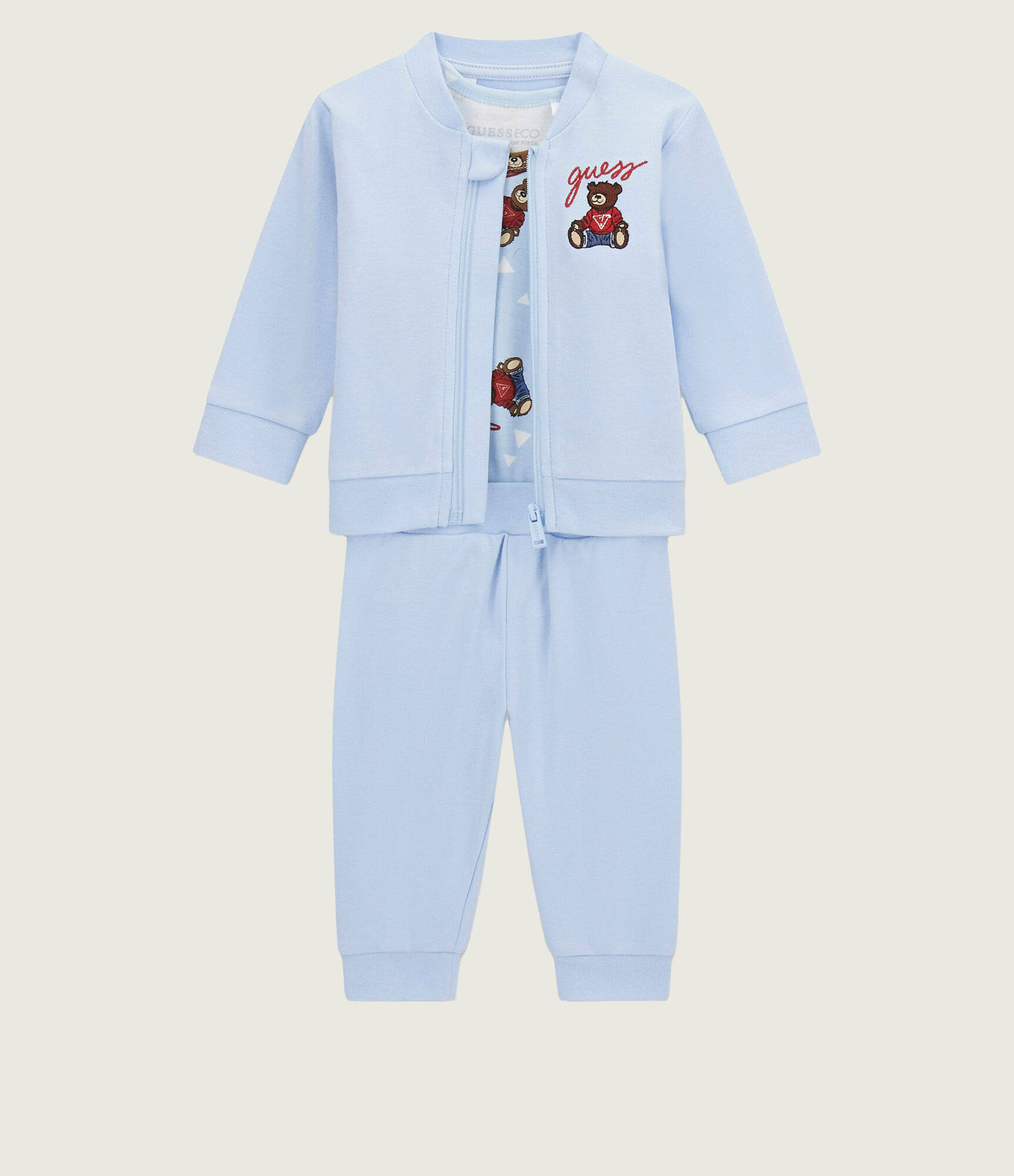 GUESS BABY SET ΖΑΚΕΤΑ, ΠΑΤΕΛΟΝΙ & ΚΟΡΜΑΚΙ ΓΑΛΑΖΙΟ