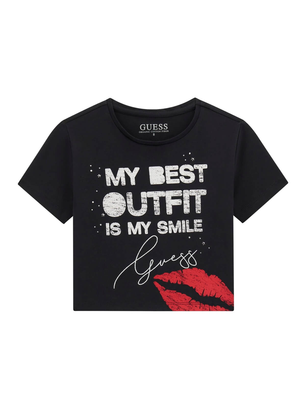 GUESS T-SHIRT CROP MY BEST OUTFIT IS MY SMILE ΜΠΛΟΥΖΑ