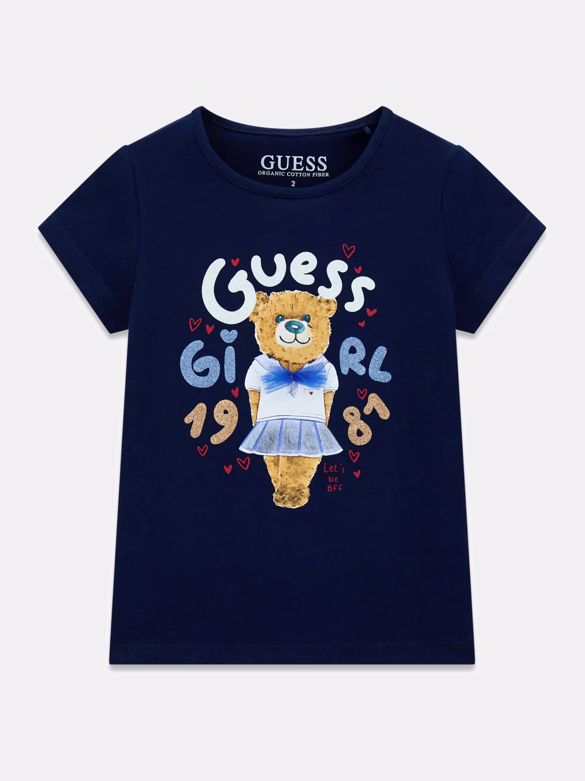 GUESS T-SHIRT SS TEDDY GIRL ΜΠΛΟΥΖΑ ΣΚΟΥΡΟ ΜΠΛΕ