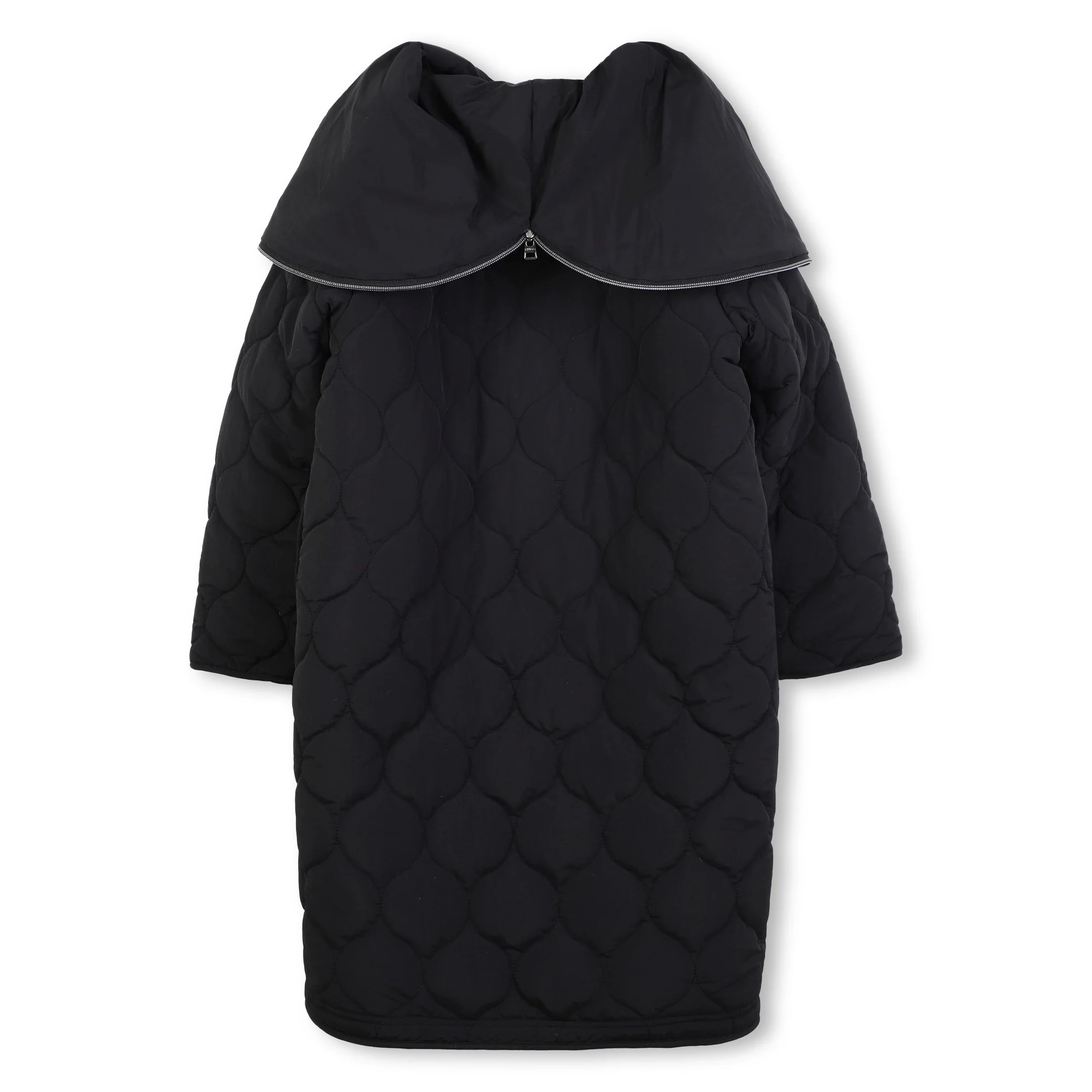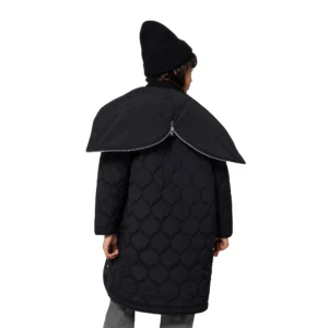 Μακρύ παρκά με κουκούλα από 100% ανακυκλωμένο πολυαμίδιο. 2 μεγάλες τσέπες στο μπροστινό μέρος. Κλείσιμο με κούμπωμα στο μπροστινό μέρος, φανταχτερό καπιτονέ τελείωμα. Ετικέτα με καουτσούκ στο μανίκι.