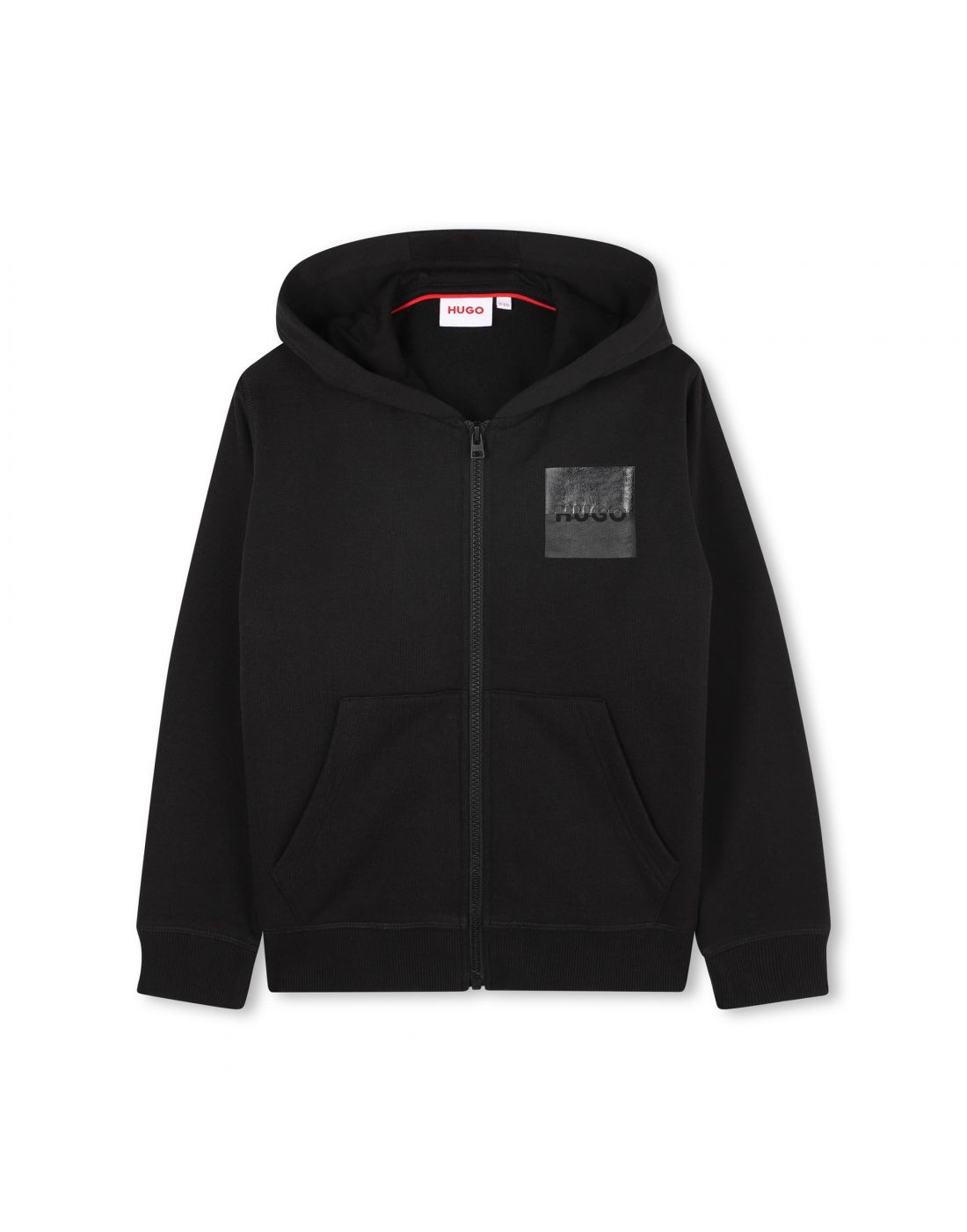 Παιδική ζακέτα φόρμας Hugo με κουκούλα, από βουρτσισμένο fleece βαμβακιού/πολυεστέρα