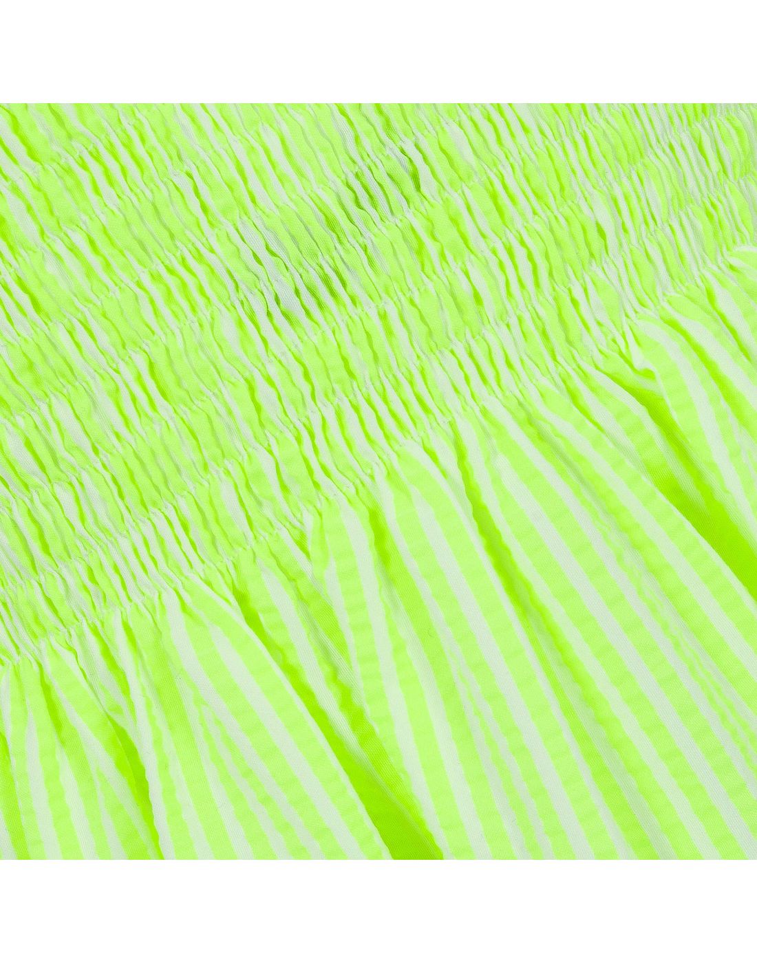 - Φόρεμα με lime ριγέ σχέδιο και σούρες στο πάνω μέρος