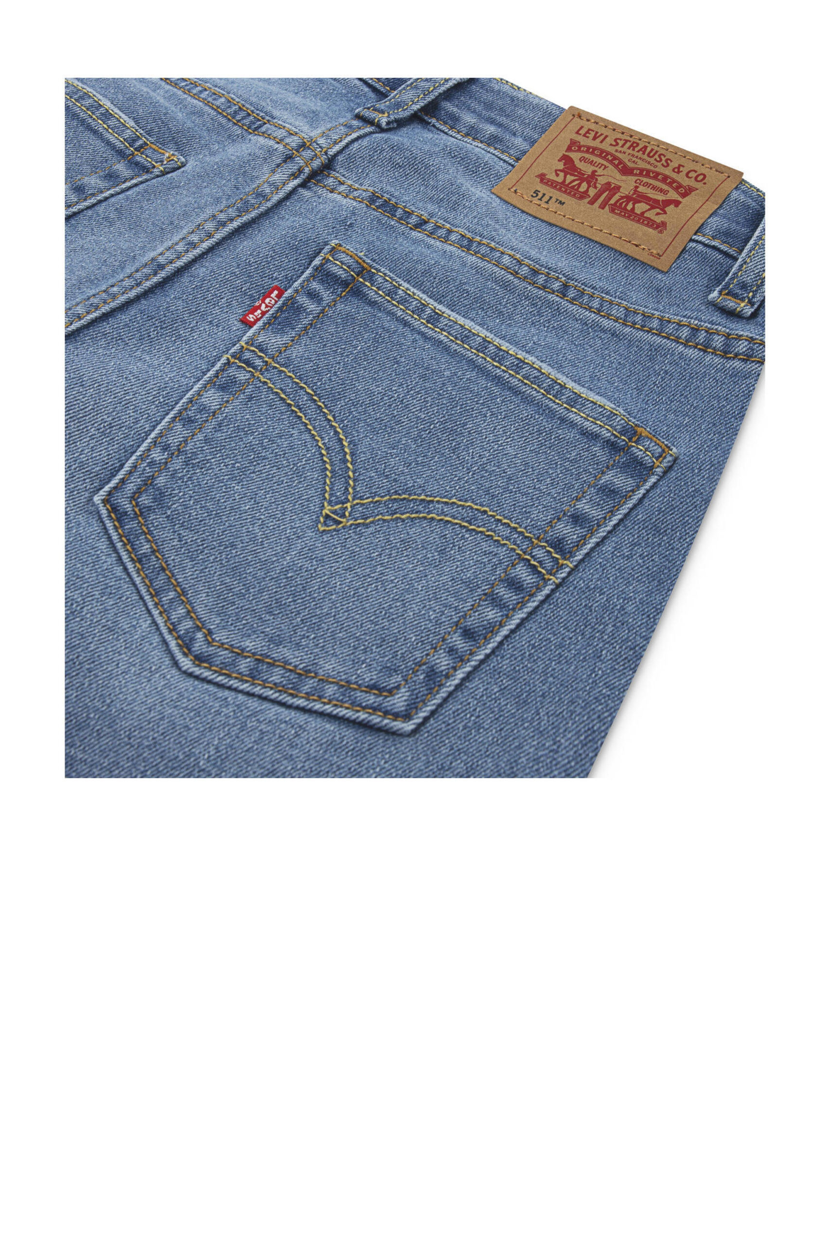 Αυτά τα τζιν Levi’s σε ίσια γραμμή συνδυάζουν στενή εφαρμογή με άνετη κανονική μέση. Είναι κατασκευασμένα από βαμβάκι, πολυεστέρα και ελαστάνη για έναν καλό συνδυασμό ανθεκτικότητας και ευέλικτης άνεσης. Τα τζιν κλείνουν με φερμουάρ και κουμπί και διαθέτουν πέντε πρακτικές τσέπες για τον γιο ή την κόρη σας.