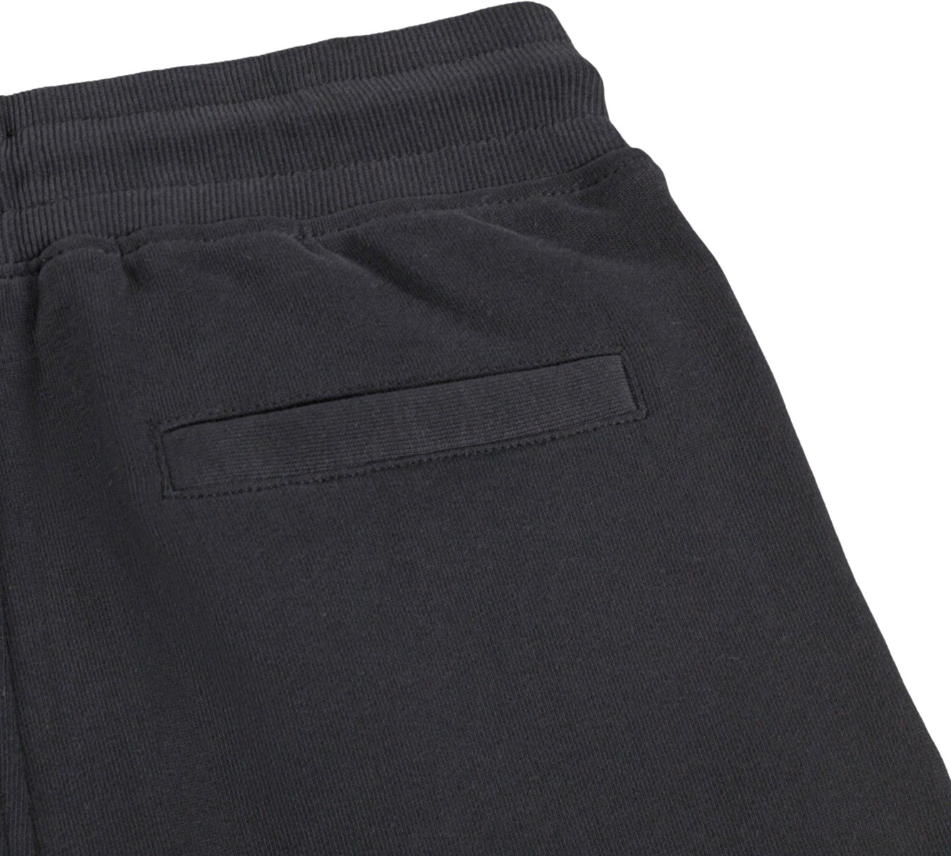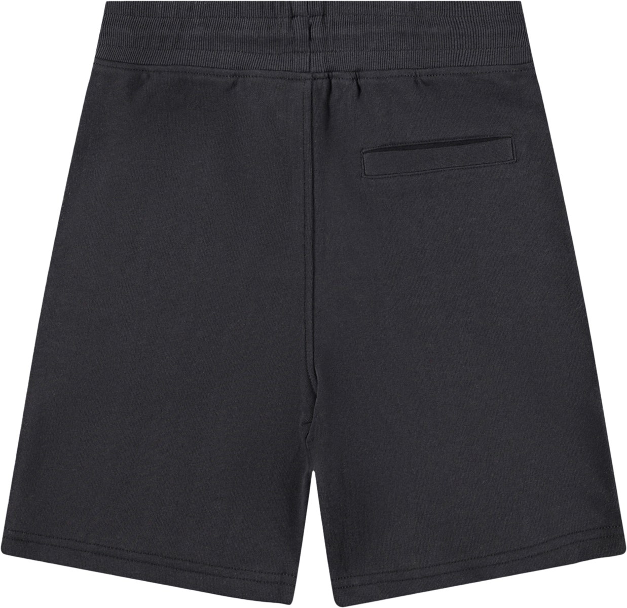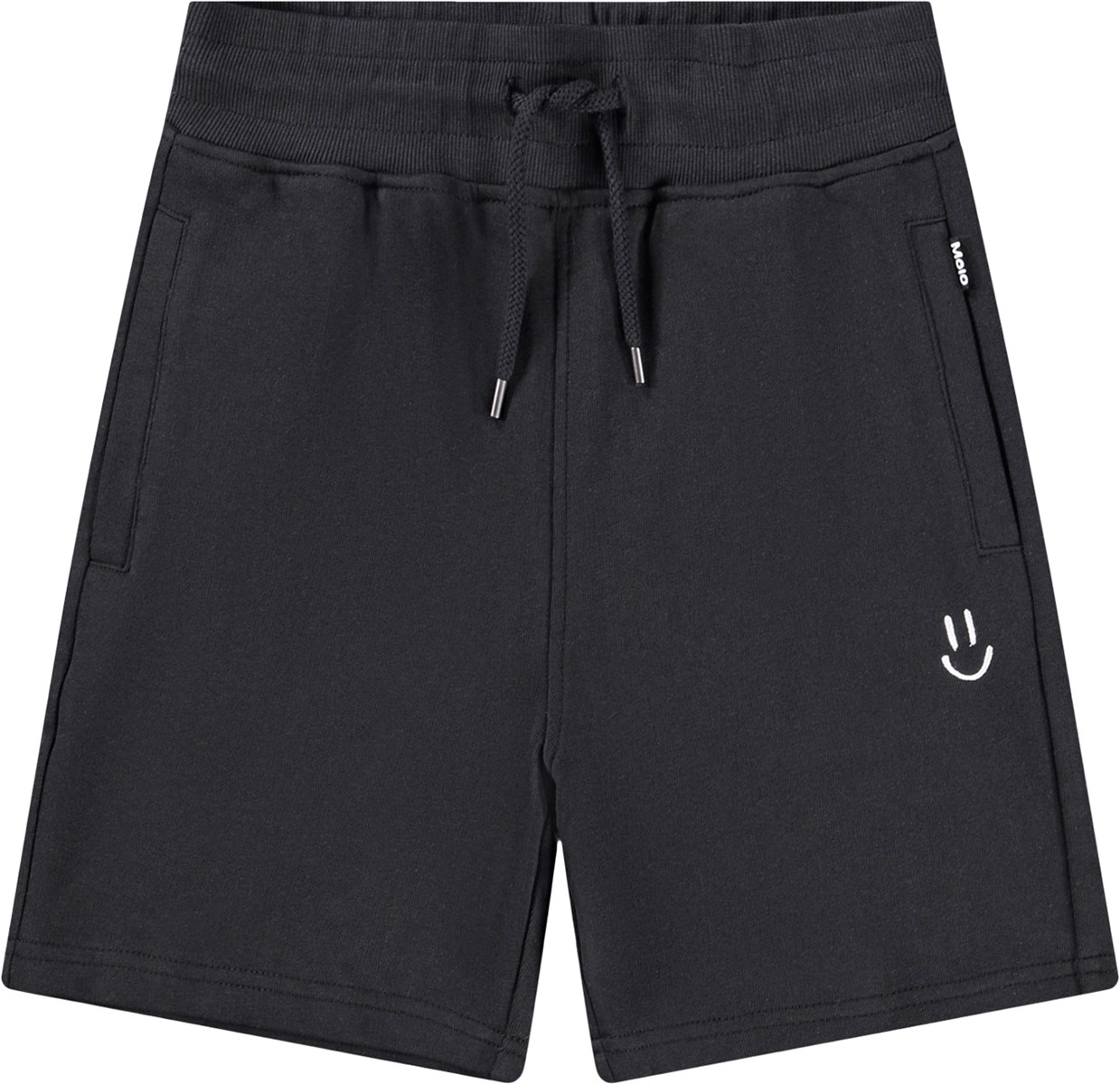 Μαύρο σορτς από απαλό οργανικό βαμβακερό ζέρσεϊ. Έχει απλή και χαλαρή εμφάνιση με πλαϊνές τσέπες, μια πίσω τσέπη και ένα μικρό κεντημένο χαμογελαστό πρόσωπο στο μπροστινό μέρος. Η μέση είναι ελαστική και ρυθμίζεται με κορδόνι περίσφιξης για βέλτιστη εφαρμογή.