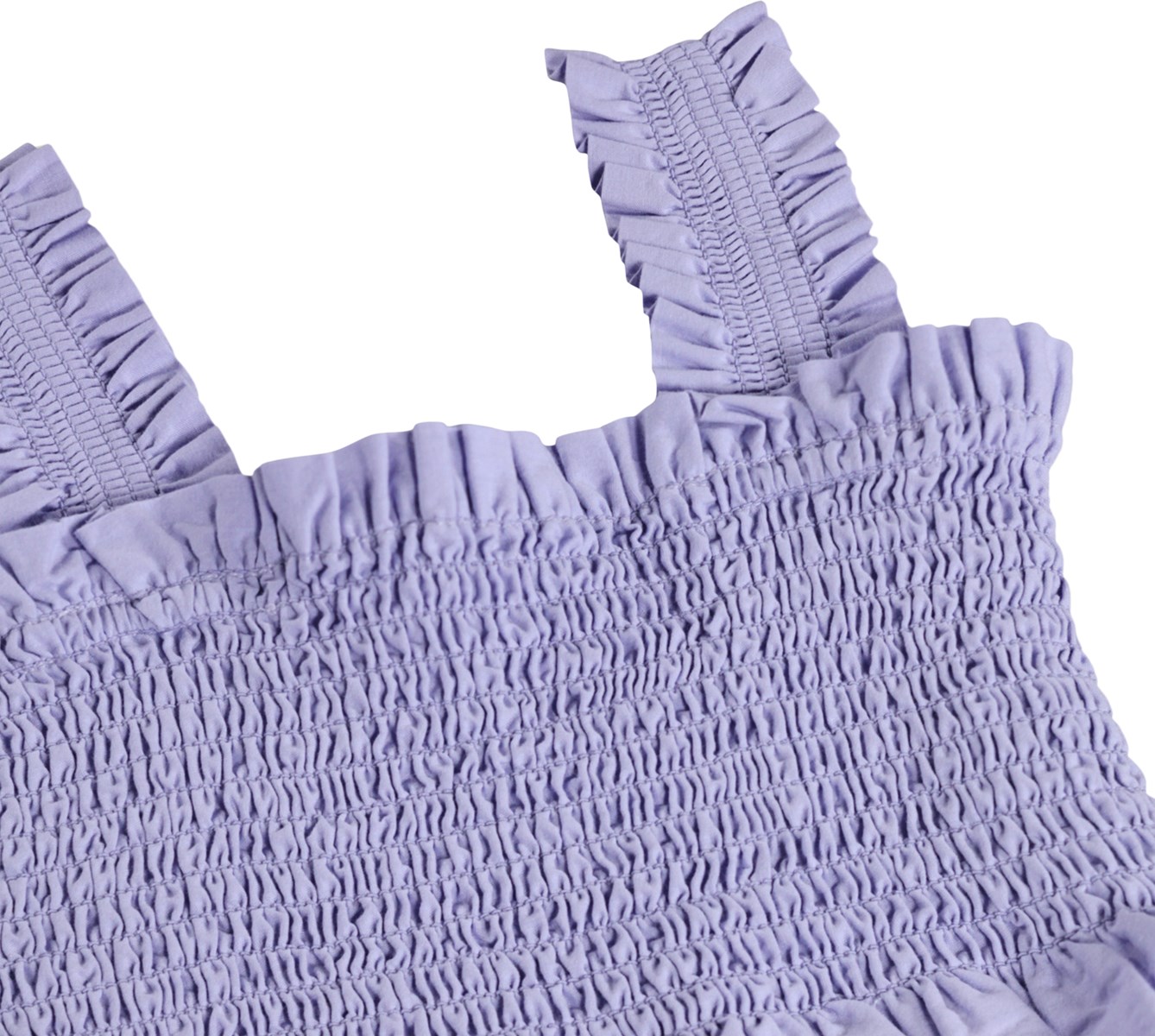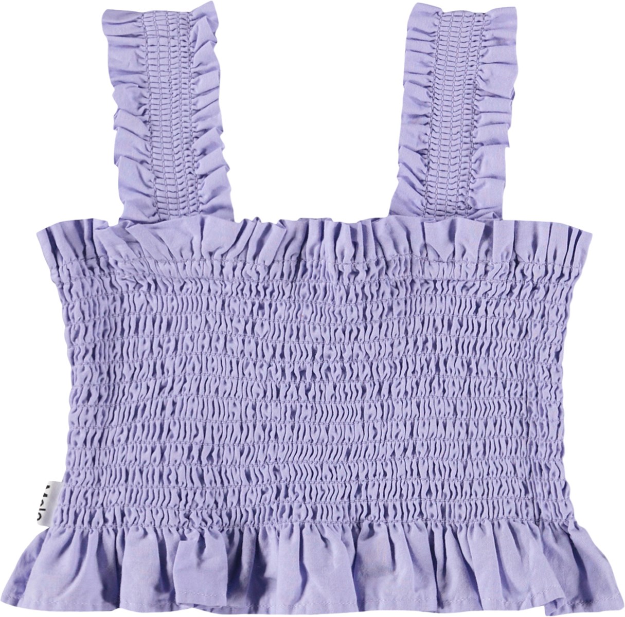 Λιλά crop top από απαλό βαμβάκι με εφέ μπλούζας, βολάν στις άκρες και φαρδιές τιράντες.