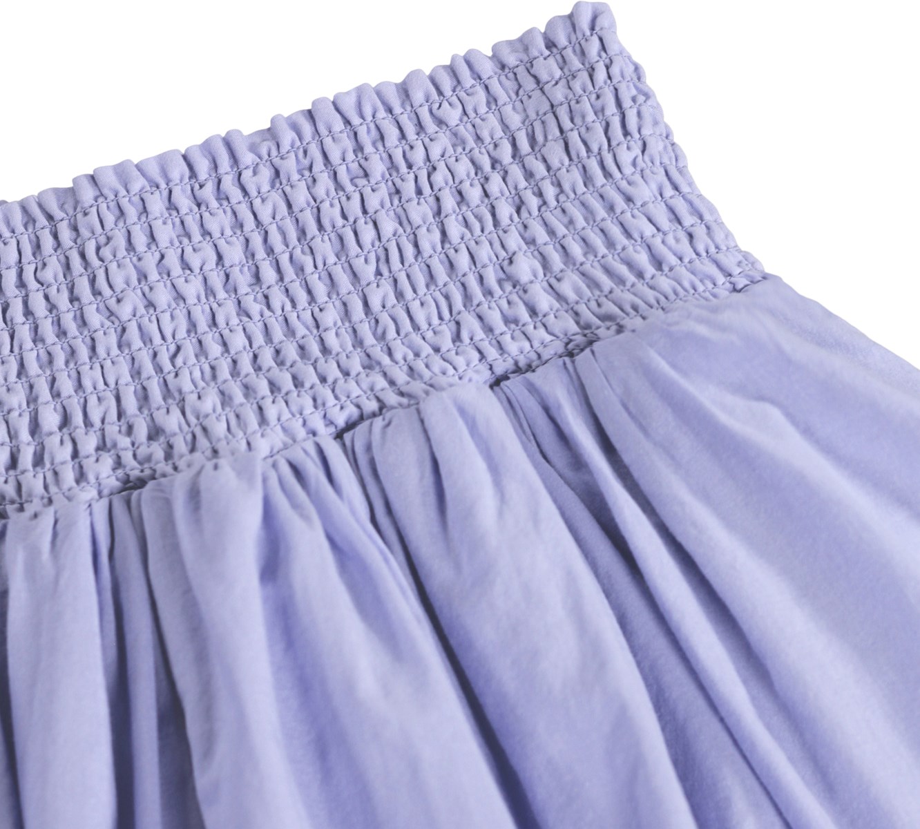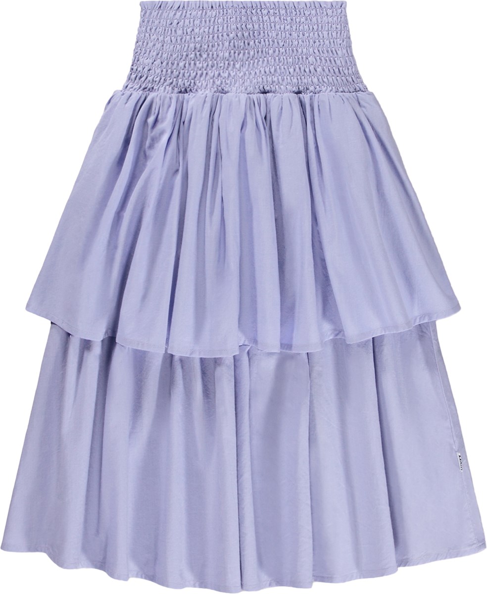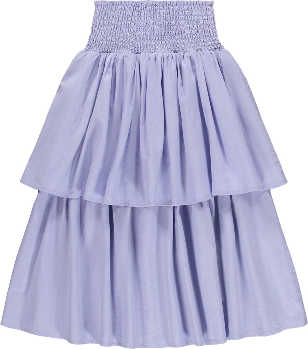 Λιλά, μακριά φούστα από απαλό βαμβάκι, με φαρδιά μπλούζα στη μέση, που εξασφαλίζει ευέλικτη εφαρμογή και εύκολη εφαρμογή. Η φούστα αποτελείται από δύο στρώσεις υφάσματος, που της δίνουν ωραίο όγκο και ανάλαφρη, ζωηρή εμφάνιση.