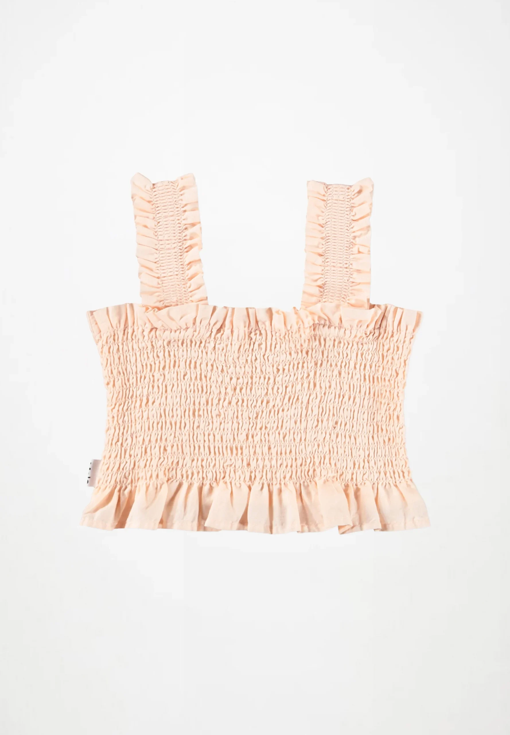 Ροζ crop top από απαλό βαμβάκι με εφέ μπλούζας, βολάν στο τελείωμα και φαρδιές τιράντες.