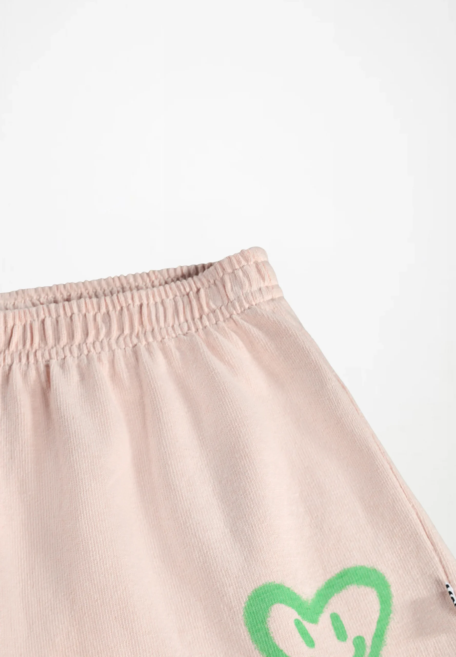 Ροζ σορτς από οργανικό βαμβάκι με στάμπα. Αυτό το σορτς έχει άνετη εφαρμογή, τσέπη στο πίσω μέρος και ελαστική μέση.
