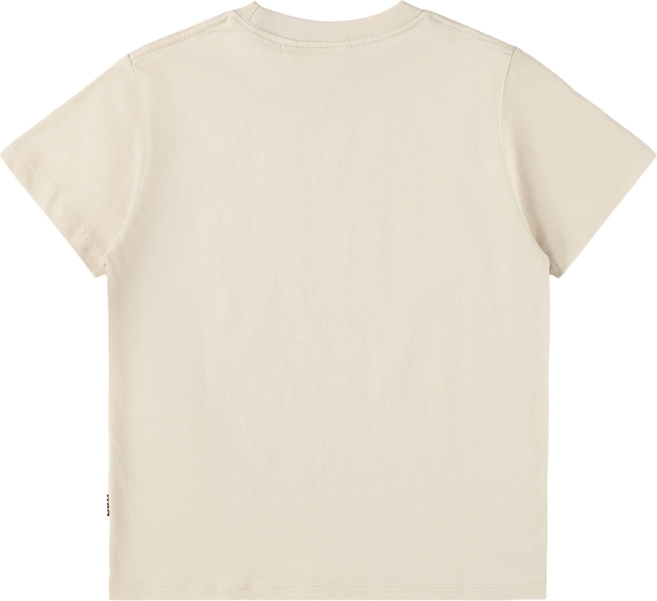 Μπεζ μπλουζάκι από απαλό οργανικό βαμβάκι με κοντά μανίκια και ριμπ λαιμόκοψη. Το μπλουζάκι έχει άνετη εφαρμογή με τύπωμα ενός χαμογελαστού προσώπου.