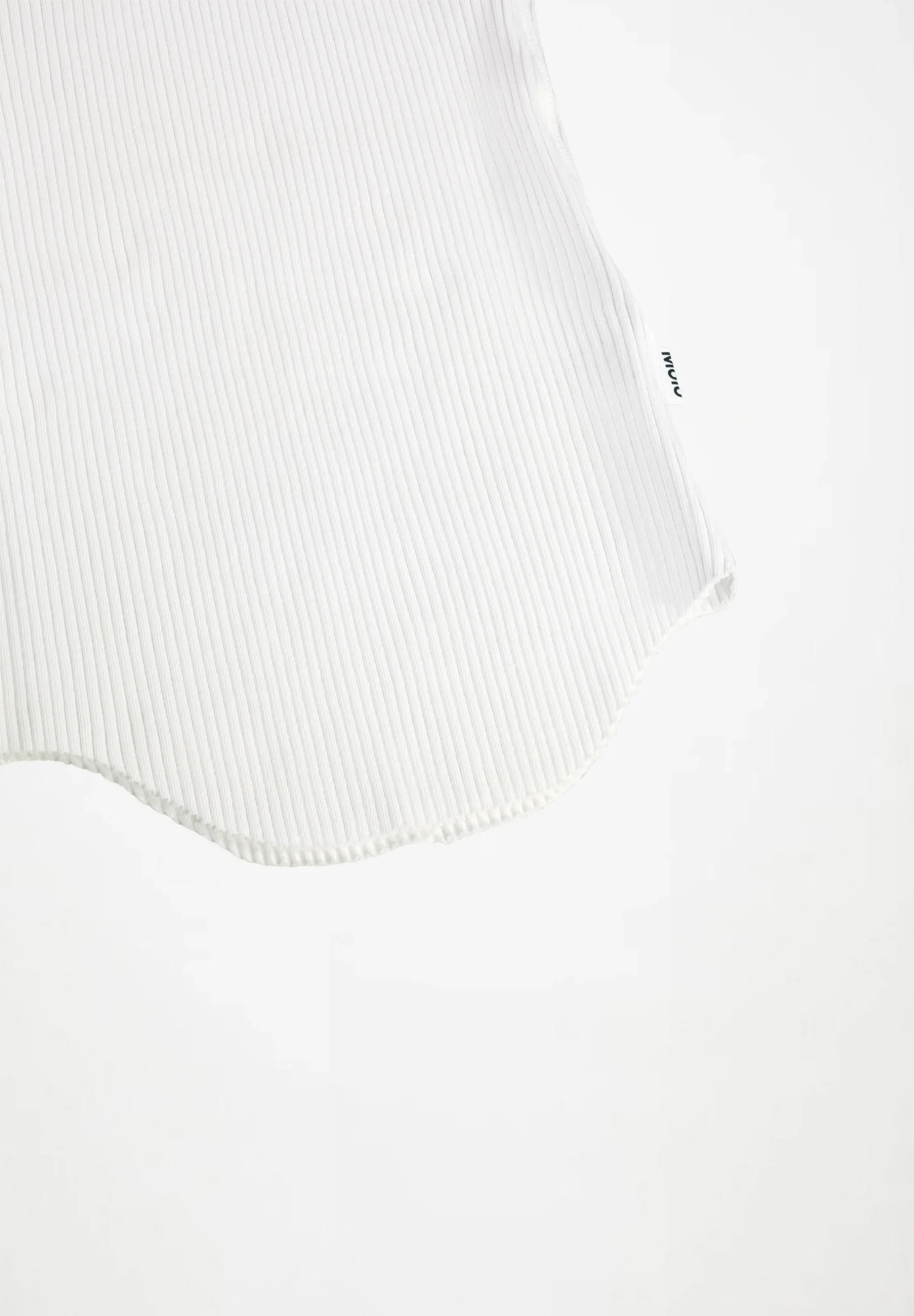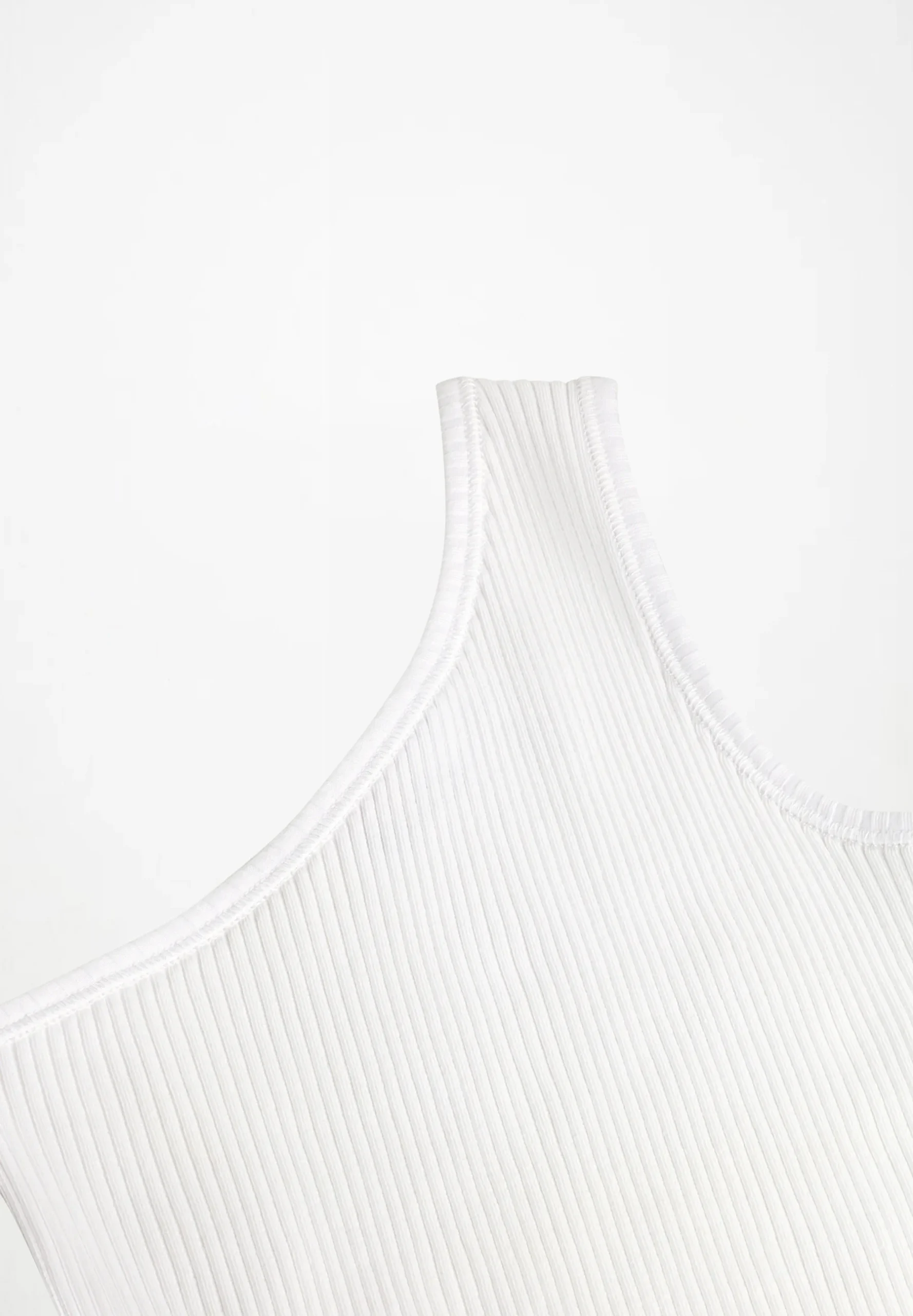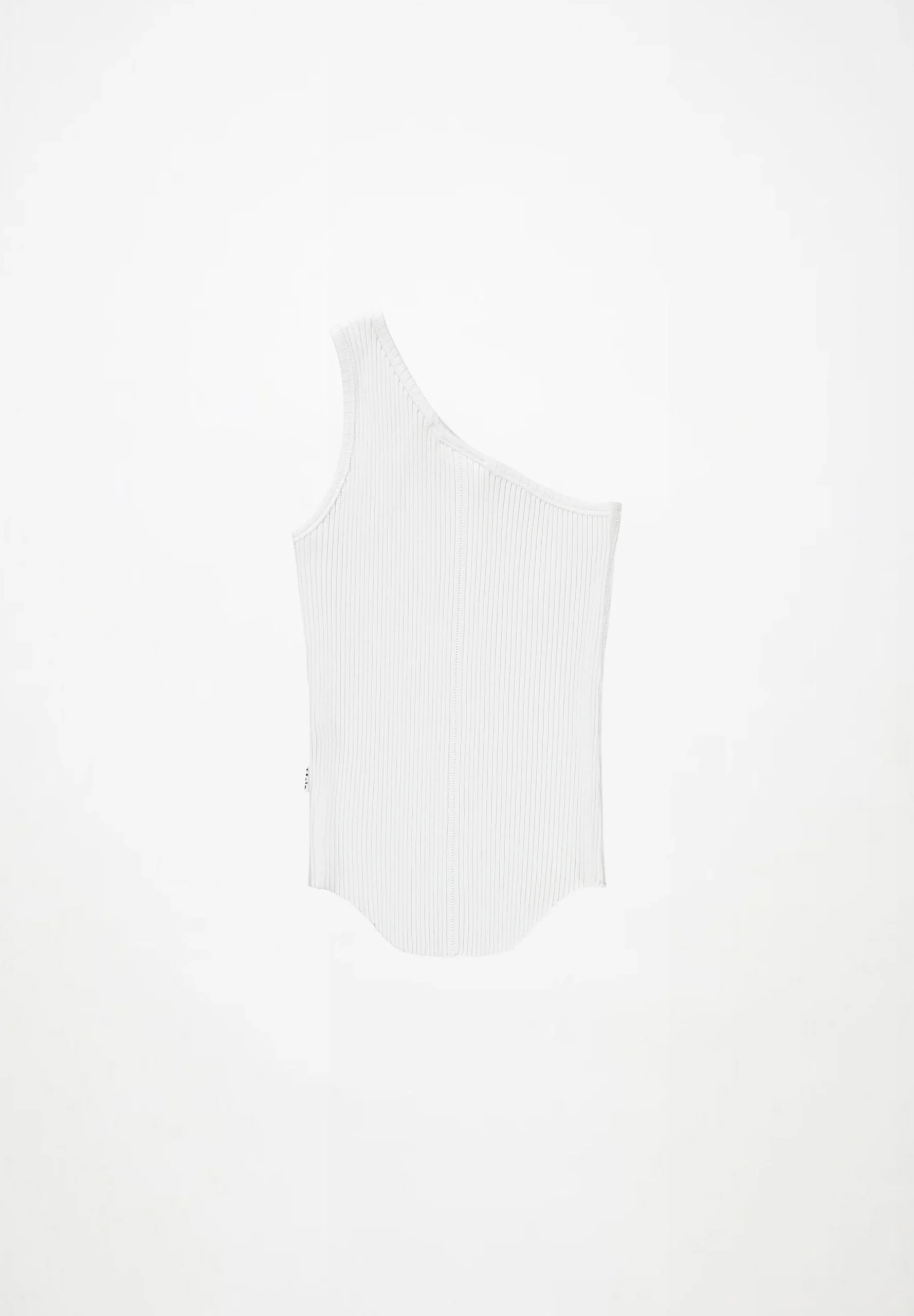 Λευκό τοπ με έναν ώμο από ελαστικό, οργανικό βαμβάκι με στενή εφαρμογή και ακατέργαστο, στρογγυλεμένο στρίφωμα στο κάτω μέρος.