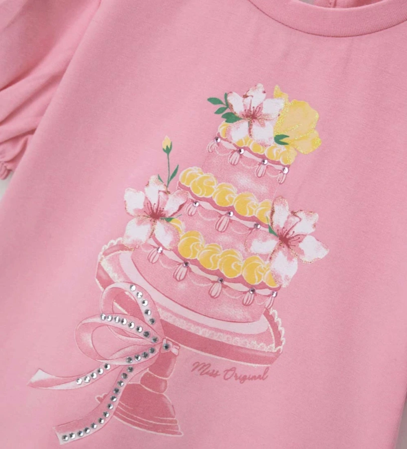 Ροζ κοντομάνικο μπλουζάκι για κορίτσια από ελαστικό βαμβάκι με στρογγυλή λαιμόκοψη και τρύπα στην πλάτη. Διακοσμητικό τύπωμα με γκλίτερ και στρας για μια εκθαμβωτική, κομψή εμφάνιση. Ιδανικό για να προσθέσετε μια πινελιά στυλ στους ζεστούς μήνες.
