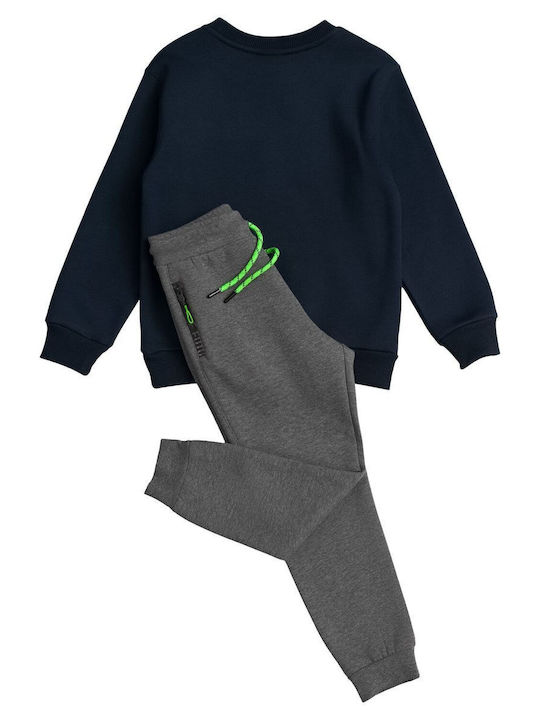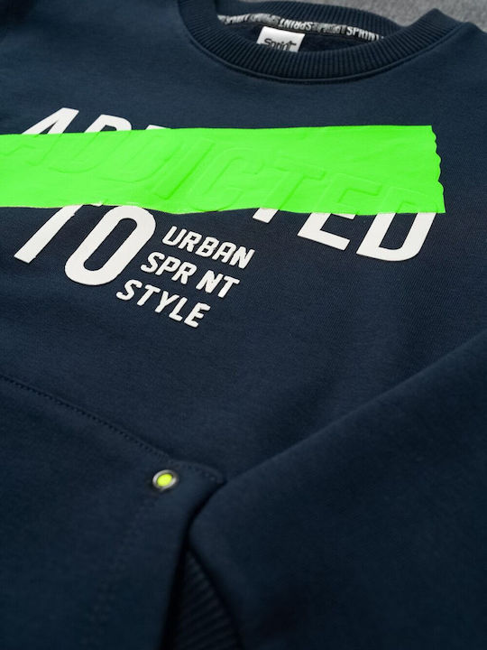 Sprint σετ που αποτελείται απο μπλούζα φούτερ χωρίς κουκούλα σε μπλέ σκούρο χρώμα με έντονη στάμπα και παντελόνι φόρμας σε γκρί χρώμα με κορδόνι και λάστιχο στη μέση, και στο τελείωμα του. Πολύ εύκολο και άνετο για τις δραστηριότητες του παιδιού σας!!