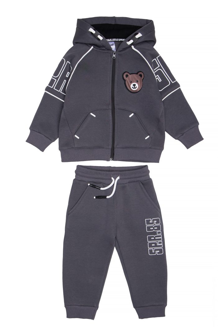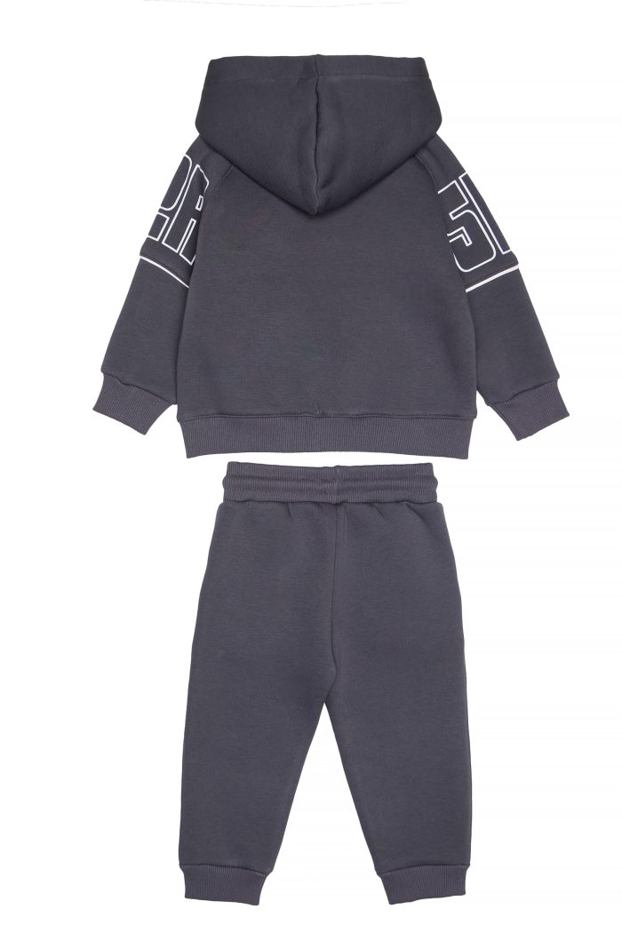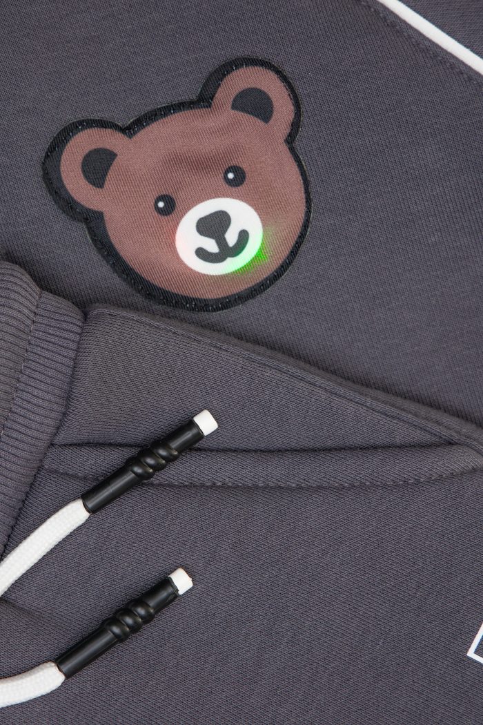 Παιδικό σετ φόρμας 2 τεμαχίων φούτερ με χνούδι. Ζακέτα με κουκούλα, κλείσιμο με φερμουάρ στο μπροστινό μέρος και τσέπες. Τύπωμα μπροστά και στα μανίκια με λεπτομέρεια δίχρωμη στις ραφές και λαμπάκι που αναβοσβήνει. Παντελόνι με ελαστικό ζωνάρι και ρυθμιζόμενα κορδόνια και τύπωμα.