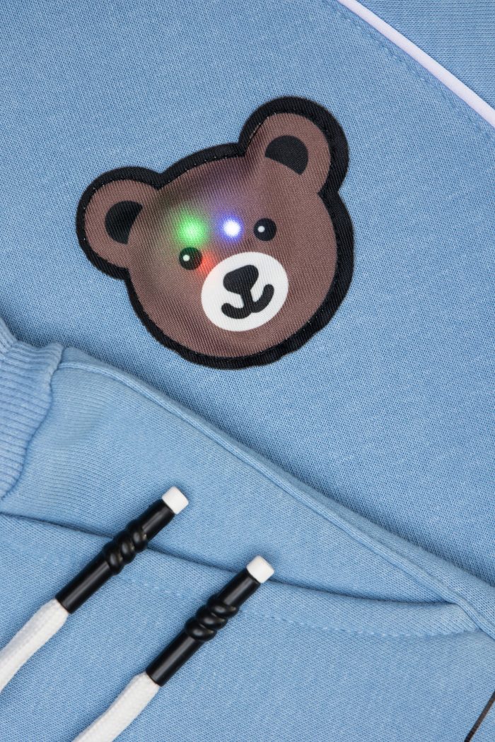 Παιδικό σετ φόρμας 2 τεμαχίων φούτερ με χνούδι. Ζακέτα με κουκούλα, κλείσιμο με φερμουάρ στο μπροστινό μέρος και τσέπες. Τύπωμα μπροστά και στα μανίκια με λεπτομέρεια δίχρωμη στις ραφές και λαμπάκι που αναβοσβήνει. Παντελόνι με ελαστικό ζωνάρι και ρυθμιζόμενα κορδόνια και τύπωμα.