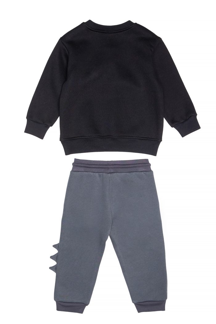 Παιδικό σετ φόρμας 2 τεμαχίων φούτερ με χνούδι. Μπλούζα με στρογγυλή λαιμόκοψη, τύπωμα εμπρός με ανάγλυφη υφή και θέμα DINOSAUR, εσωτερική κόρνα που κάνει ήχο. Παντελόνι με ελαστικό ζωνάρι και ρυθμιζόμενα κορδόνια, μπροστινές λοξές τσέπες με λεπτομέρεια πτερύγια στο πλαϊ και τύπωμα.