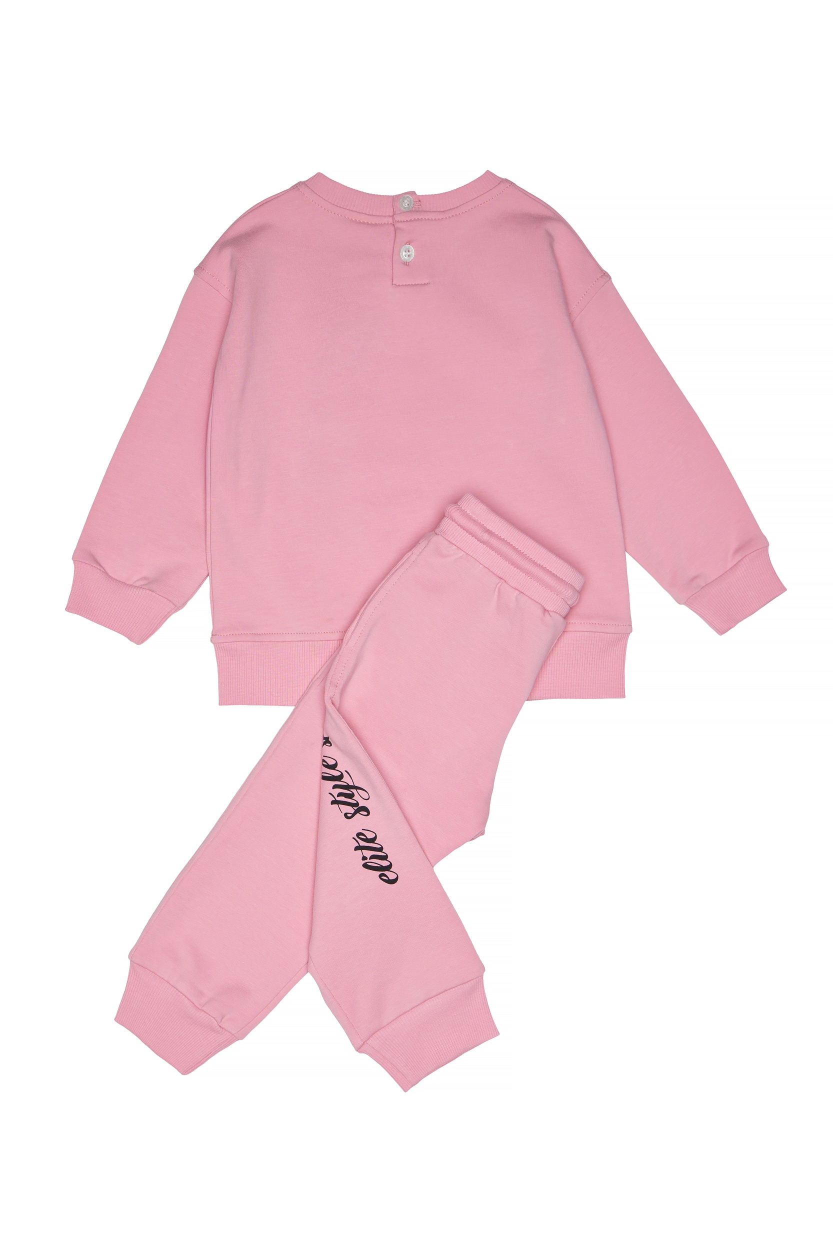 Παιδικό σετ φόρμας 2 τεμαχίων φούτερ λύκρα με χνούδι. Μπλούζα με στρογγυλή λαιμόκοψη, με τύπωμα εμπρός και sugar glitter λεπτομέρεια και απλικέ αυτάκια. Παντελόνι με ελαστικό ζωνάρι και ρυθμιζόμενα κορδόνια με πλαϊνές τσέπες και τύπωμα.