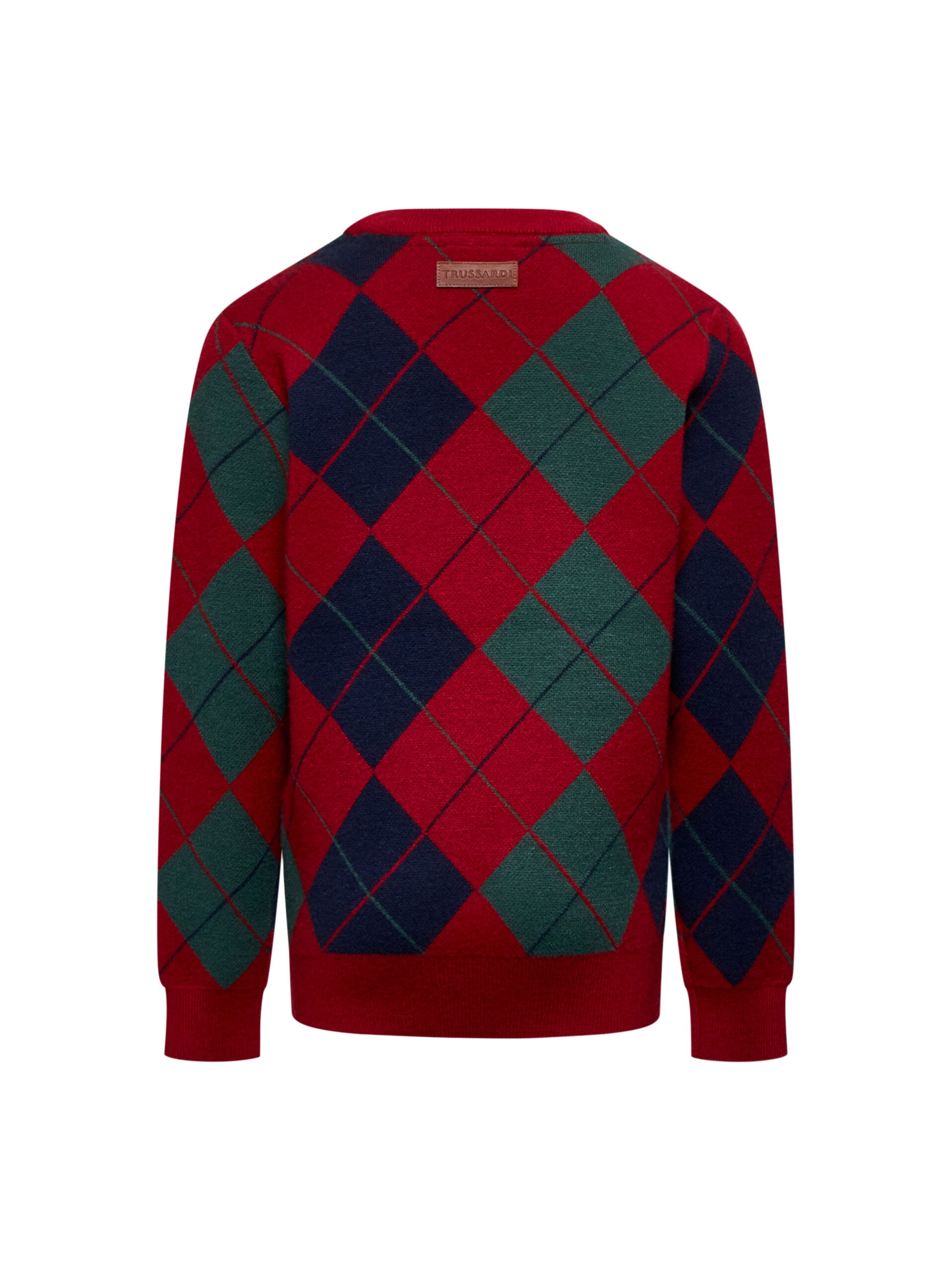 Κόκκινο πουλόβερ, με μακριά μανίκια, στρογγυλή λαιμόκοψη, μανσέτες και στρίφωμα. Είναι διακοσμημένο με κεντημένο λογότυπο στο στήθος και με έμπλαστρο με το λογότυπο στο πίσω μέρος.