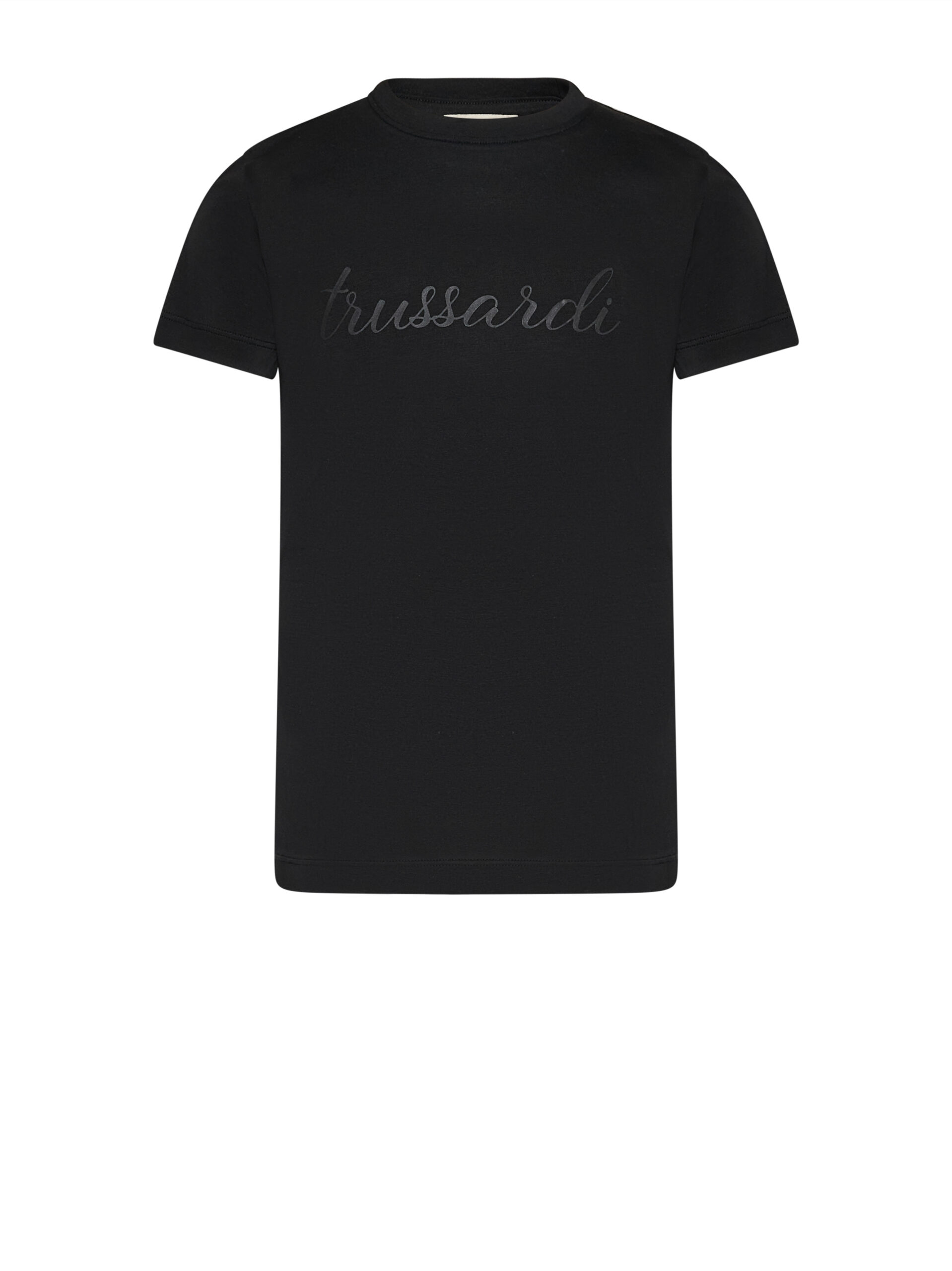 Μονόχρωμο μπλουζάκι Trussardi με στρογγυλή λαιμόκοψη και λογότυπο Trussardi. Κατασκευασμένο από 100% βαμβάκι. Για κορίτσια.
