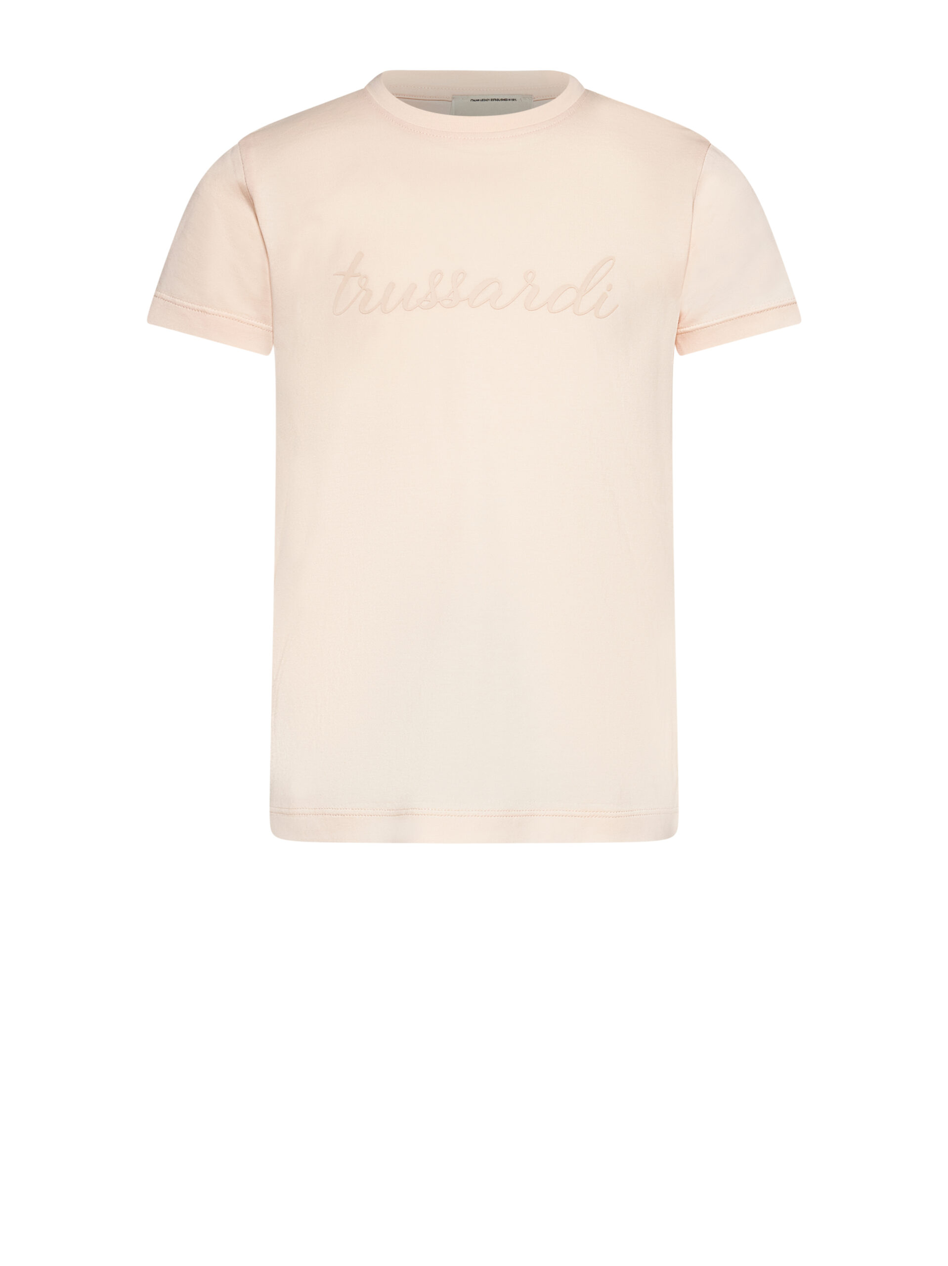 Μονόχρωμο μπλουζάκι Trussardi με στρογγυλή λαιμόκοψη και λογότυπο Trussardi. Κατασκευασμένο από 100% βαμβάκι. Για κορίτσια.